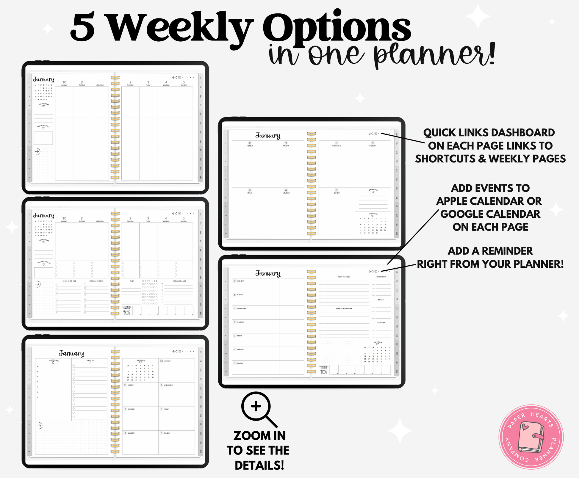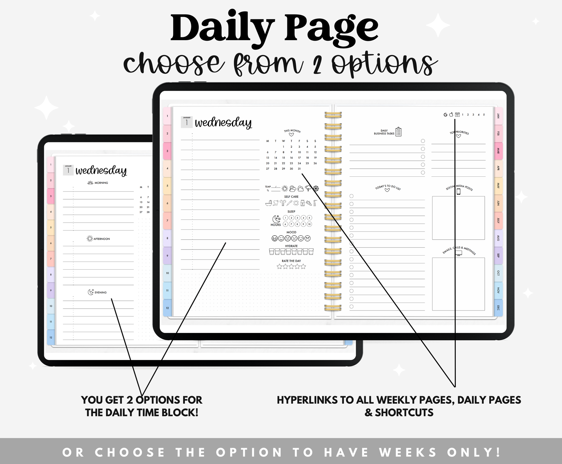 With 5 different weekly layouts to choose from, endless templates for anything and everything you need to plan for, and not to mention the absolutely adorable design, the 2025 Neutral Digital Business Planner is perfect for you.