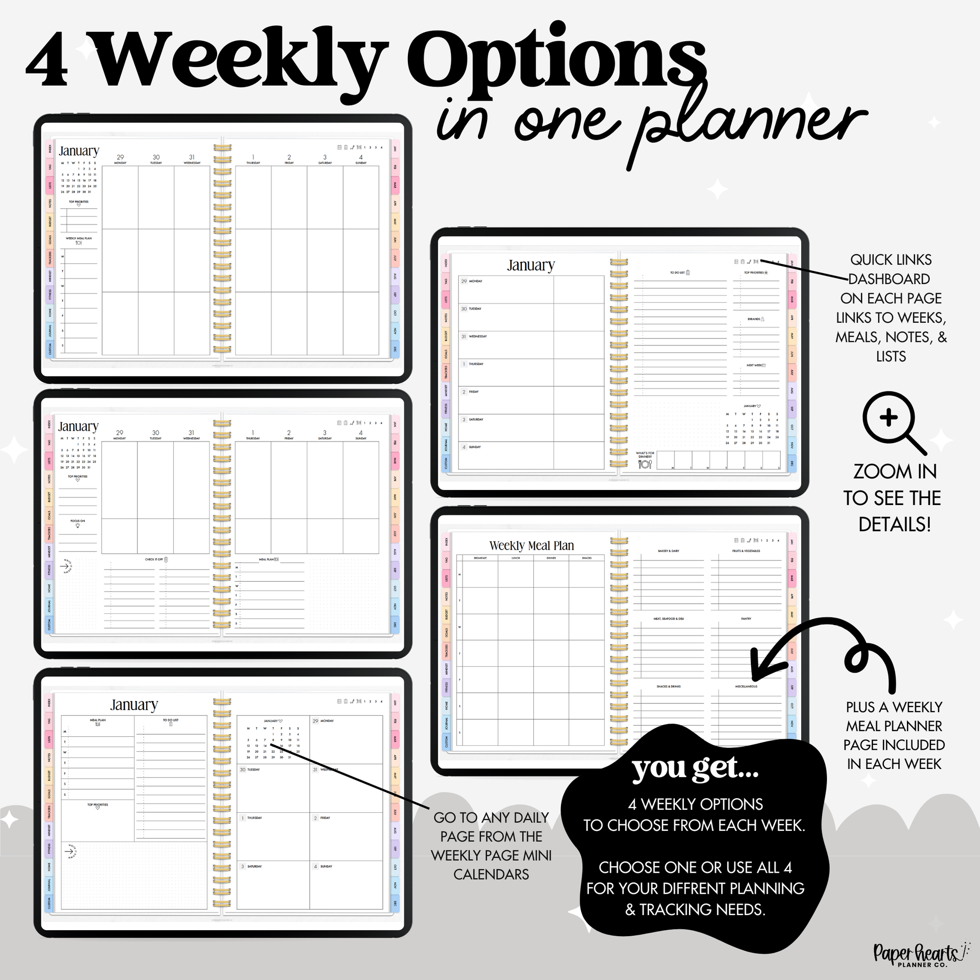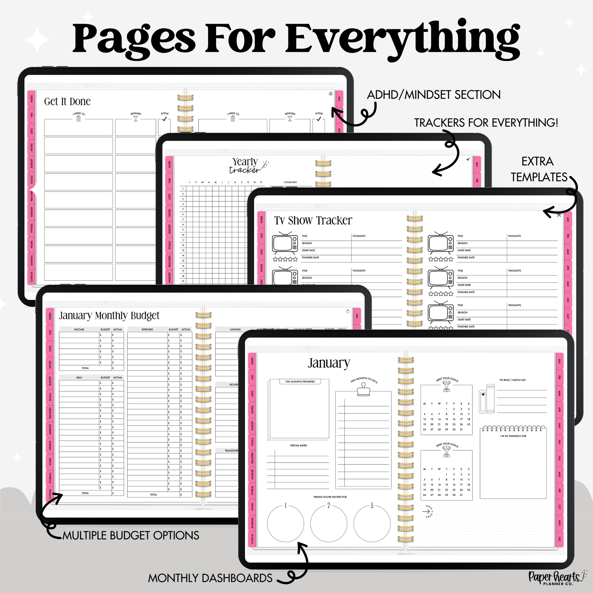With 4 different weekly layouts to choose from, endless templates for anything and everything you need to plan for, and not to mention the absolutely adorable design, the 2026 Everything Digital Planner is perfect for you.