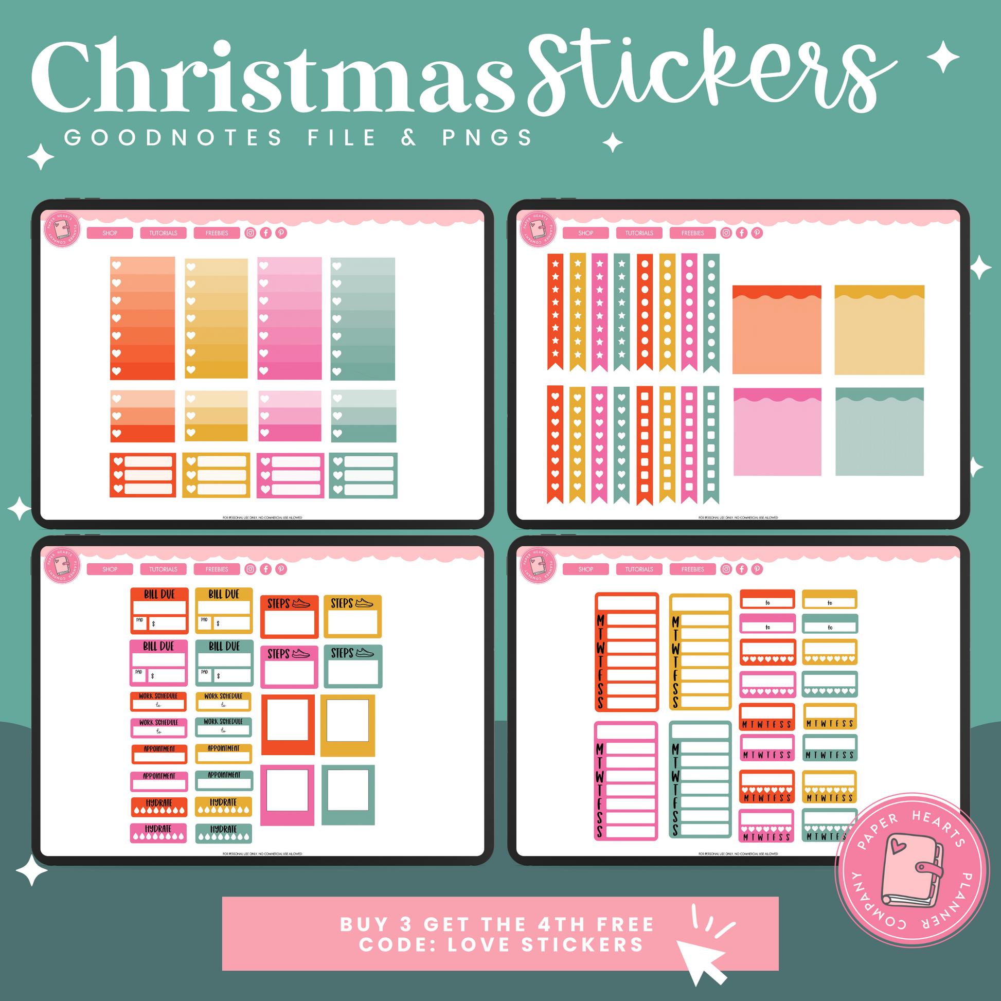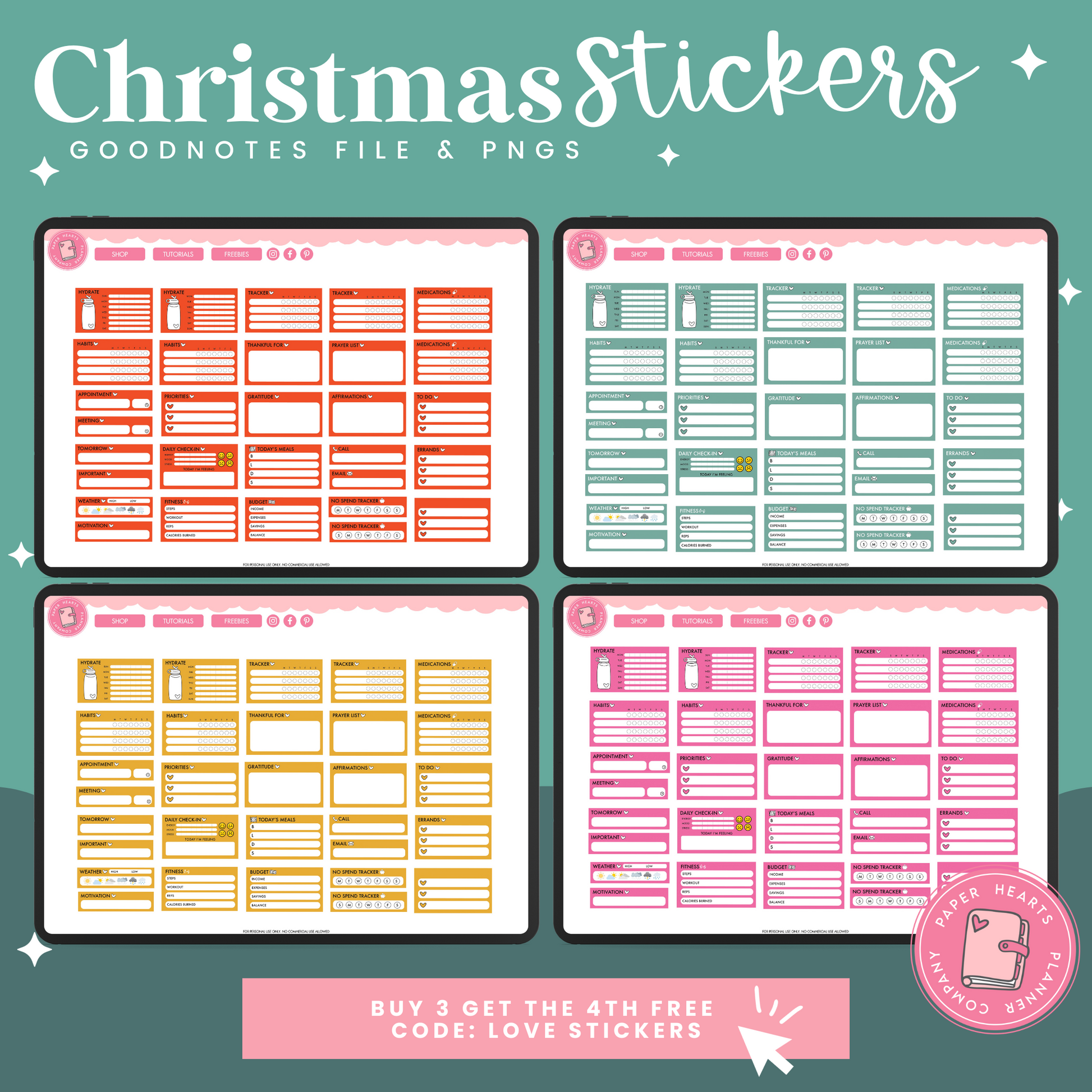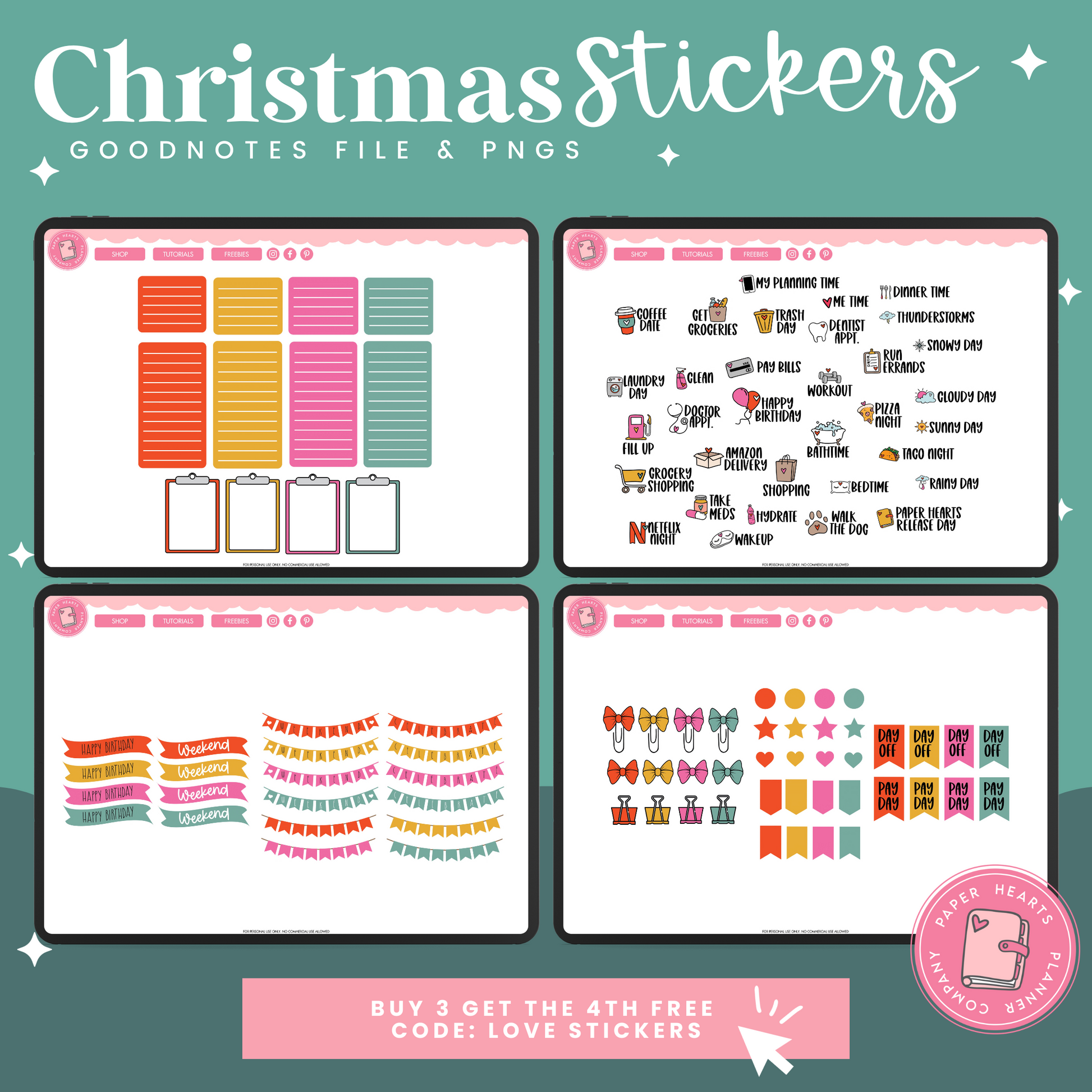 All of our products are for personal use only. None of our stickers, planners, or printables may be redistributed commercially. All rights remain with Lindsay Lawless, Paper Hearts Planner Co.