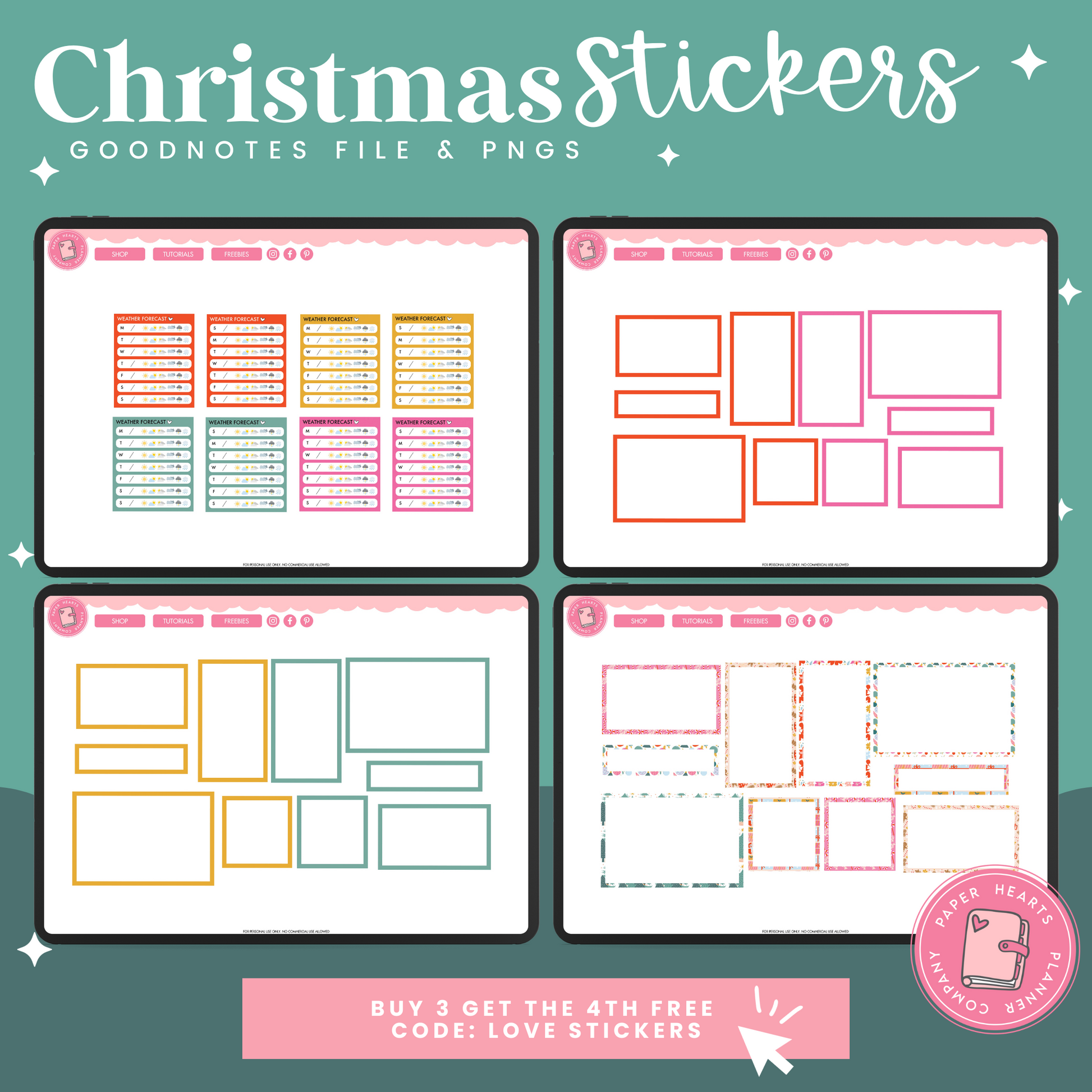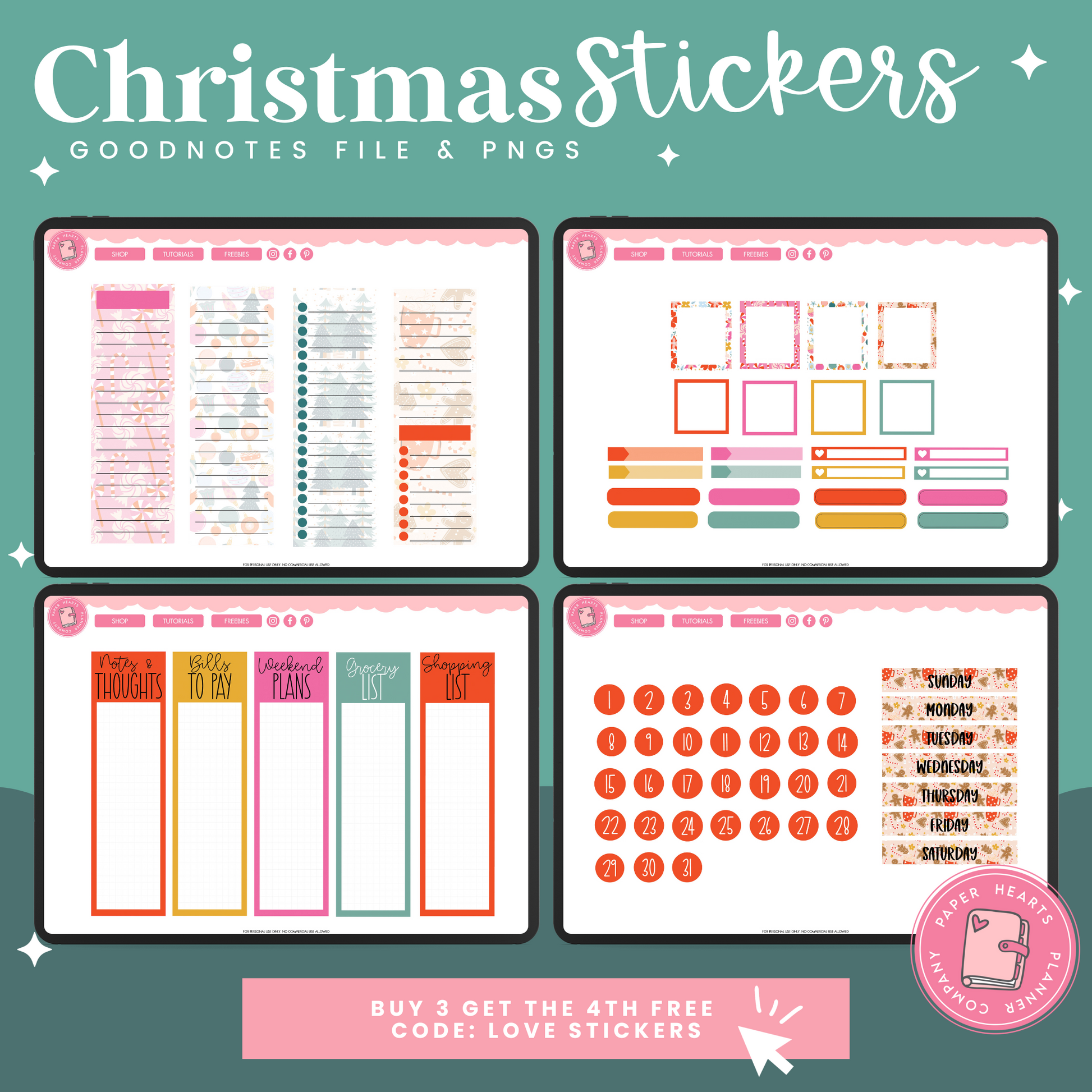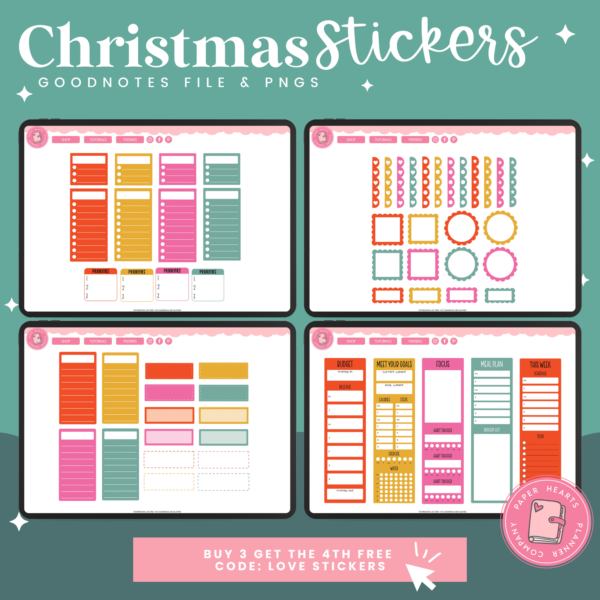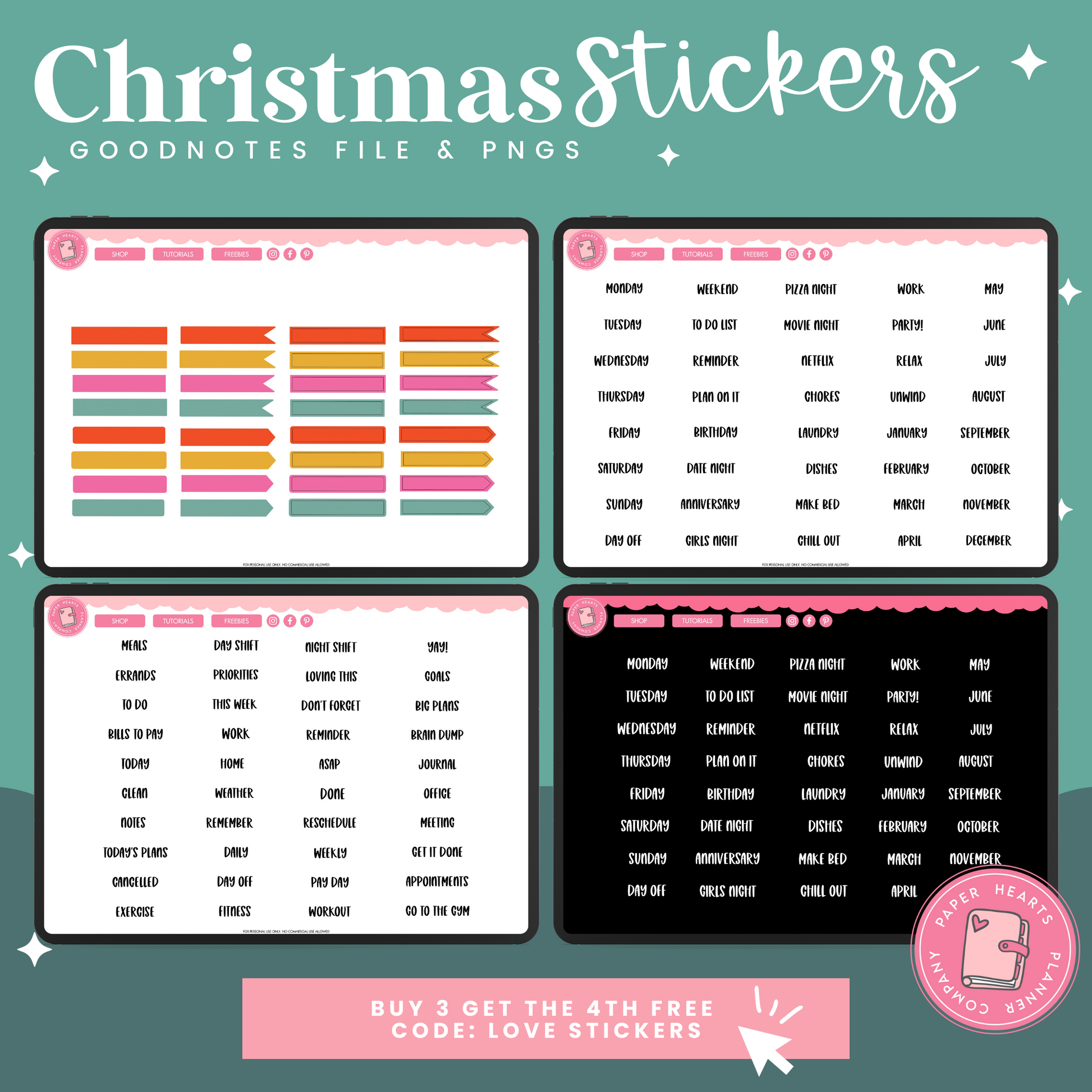 All of our products are for personal use only. None of our stickers, planners, or printables may be redistributed commercially. All rights remain with Lindsay Lawless, Paper Hearts Planner Co.