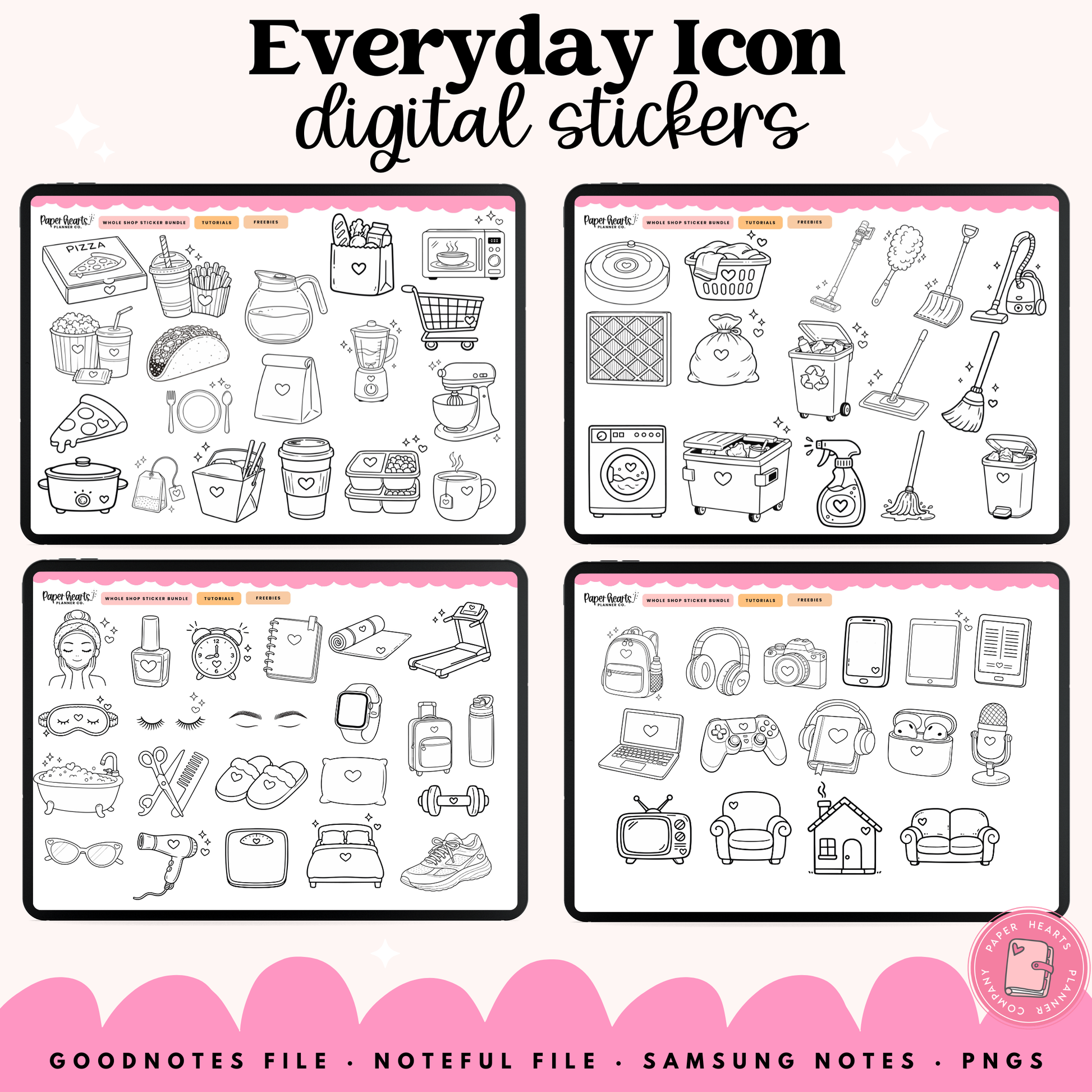 Use these Everyday Icon Stickers in your digital planner to keep track of your appointments, schedule, routines and more! These little icons can be used on any month, week or day of your calendar to help you decorate your planner and keep track of what you have going on!