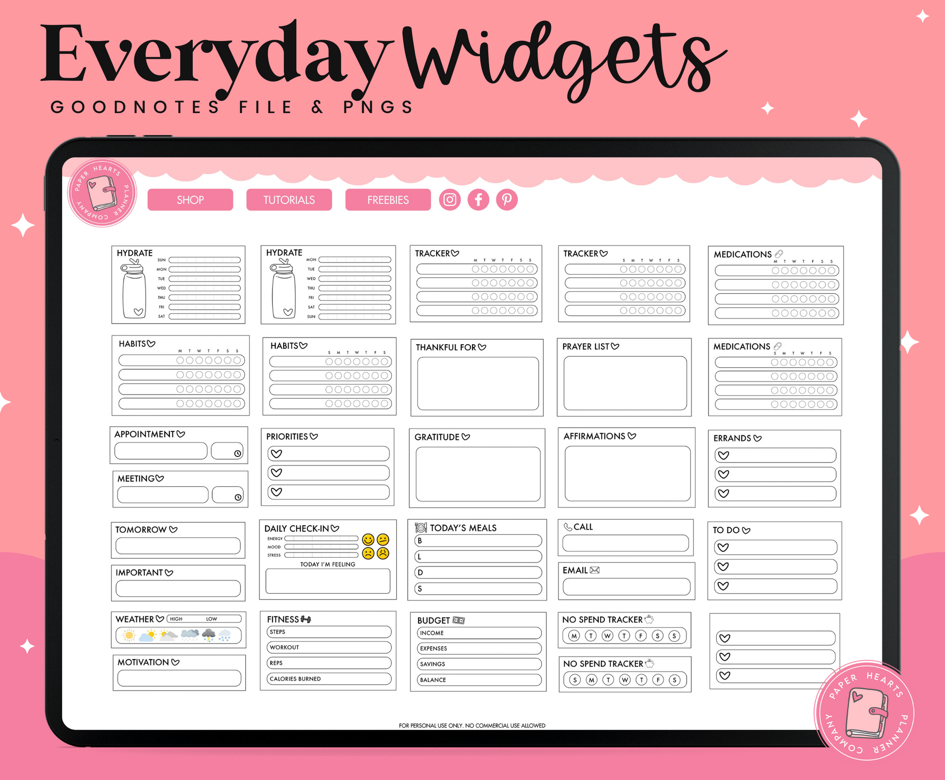 These widgets include all the widgets you need to track your schedule, habits, to do list and more on a daily basis!