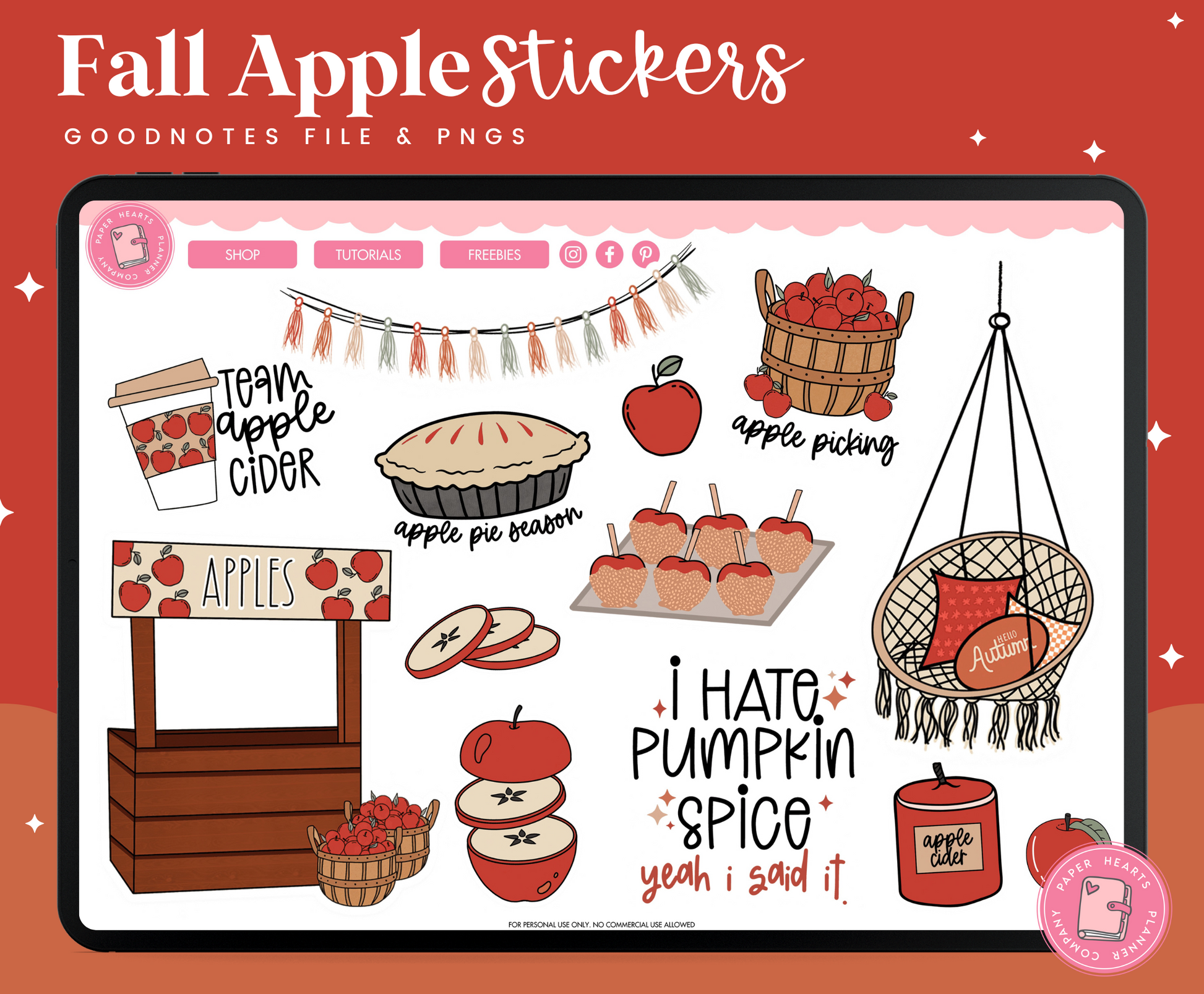 Fall is not just for pumpkins. Decorate your digital planner with these fun Apple Picking Stickers. Fall is for Apple Cider too!