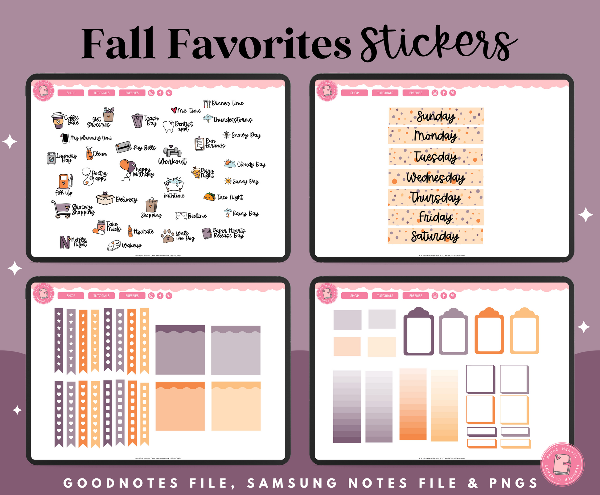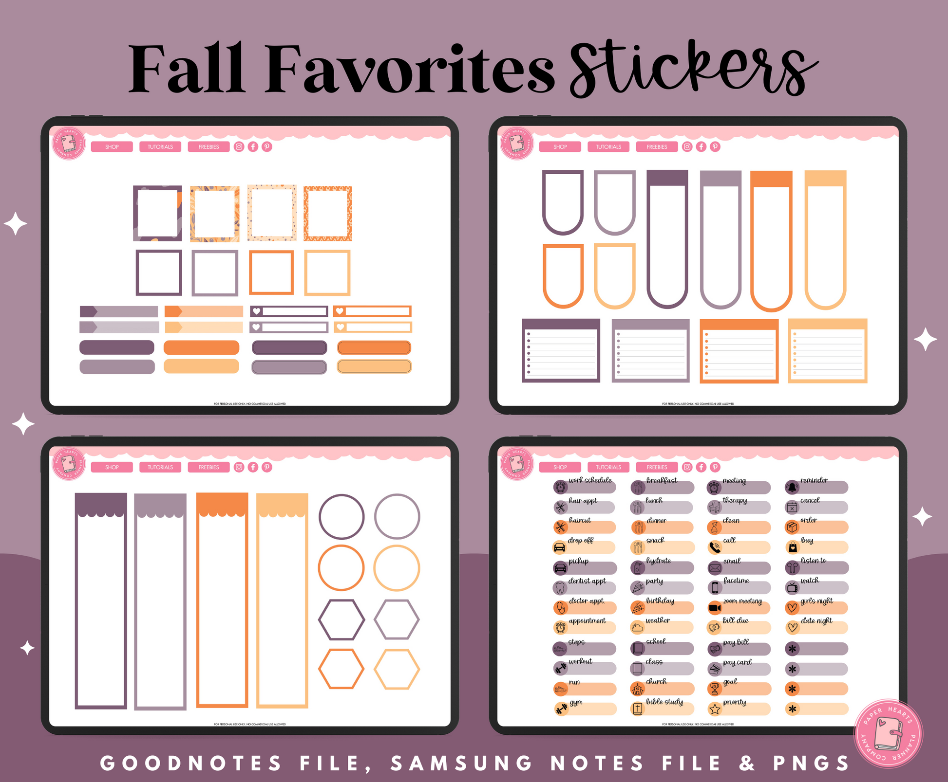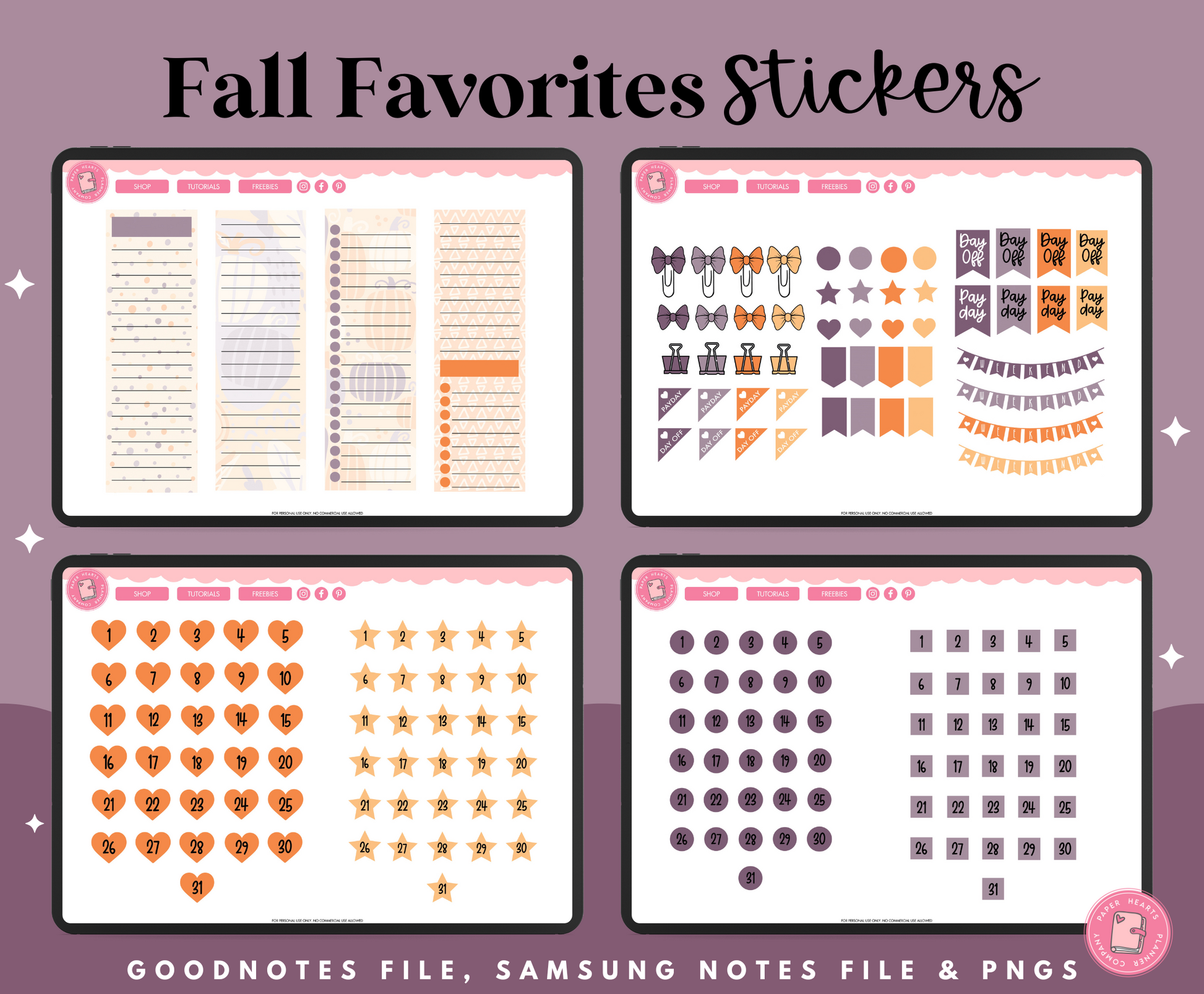 Decorate your planner for fall with these Fall Digital Planner Stickers. These Fall Favorites stickers are perfect to use in your planner all throughout Autumn.