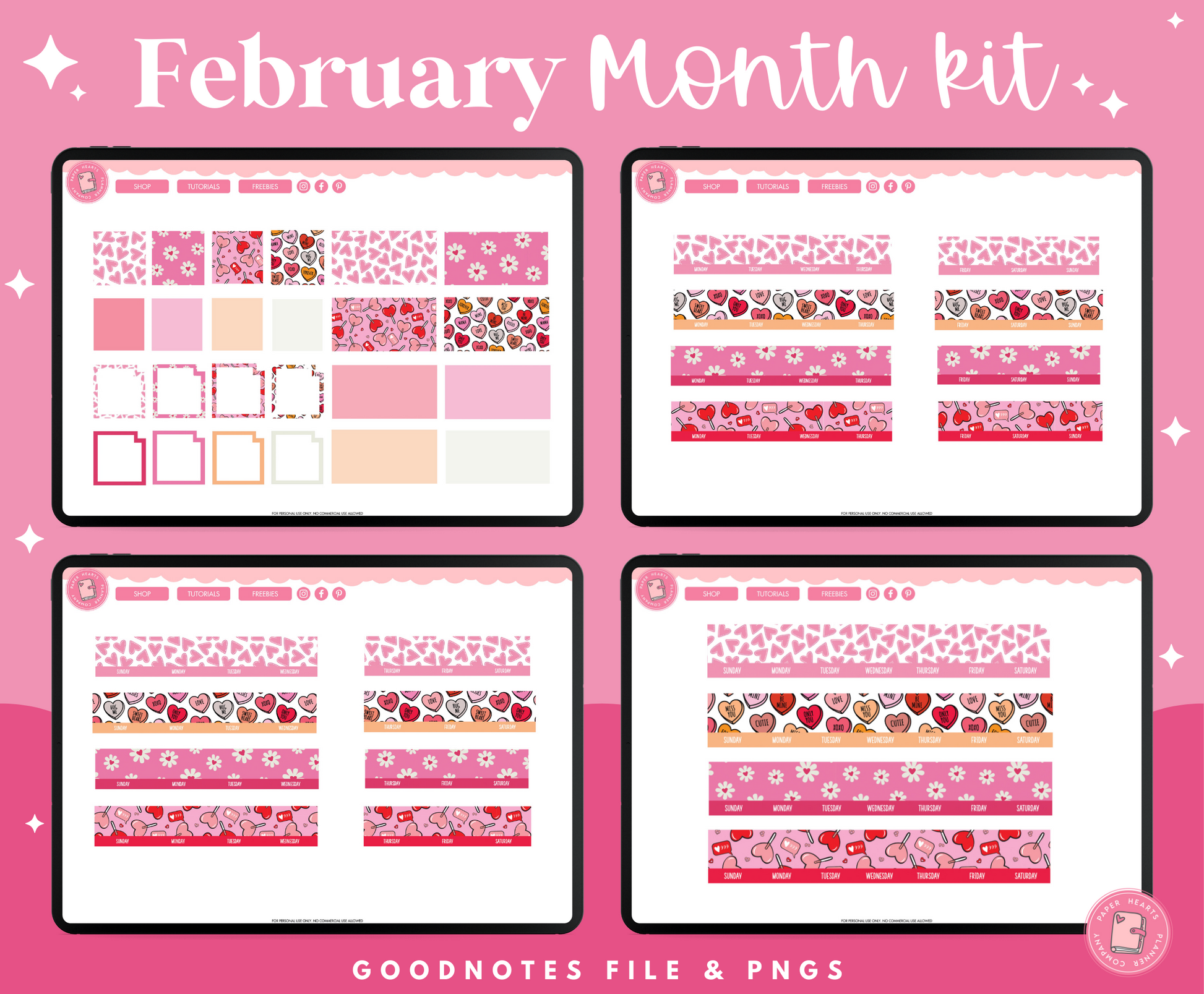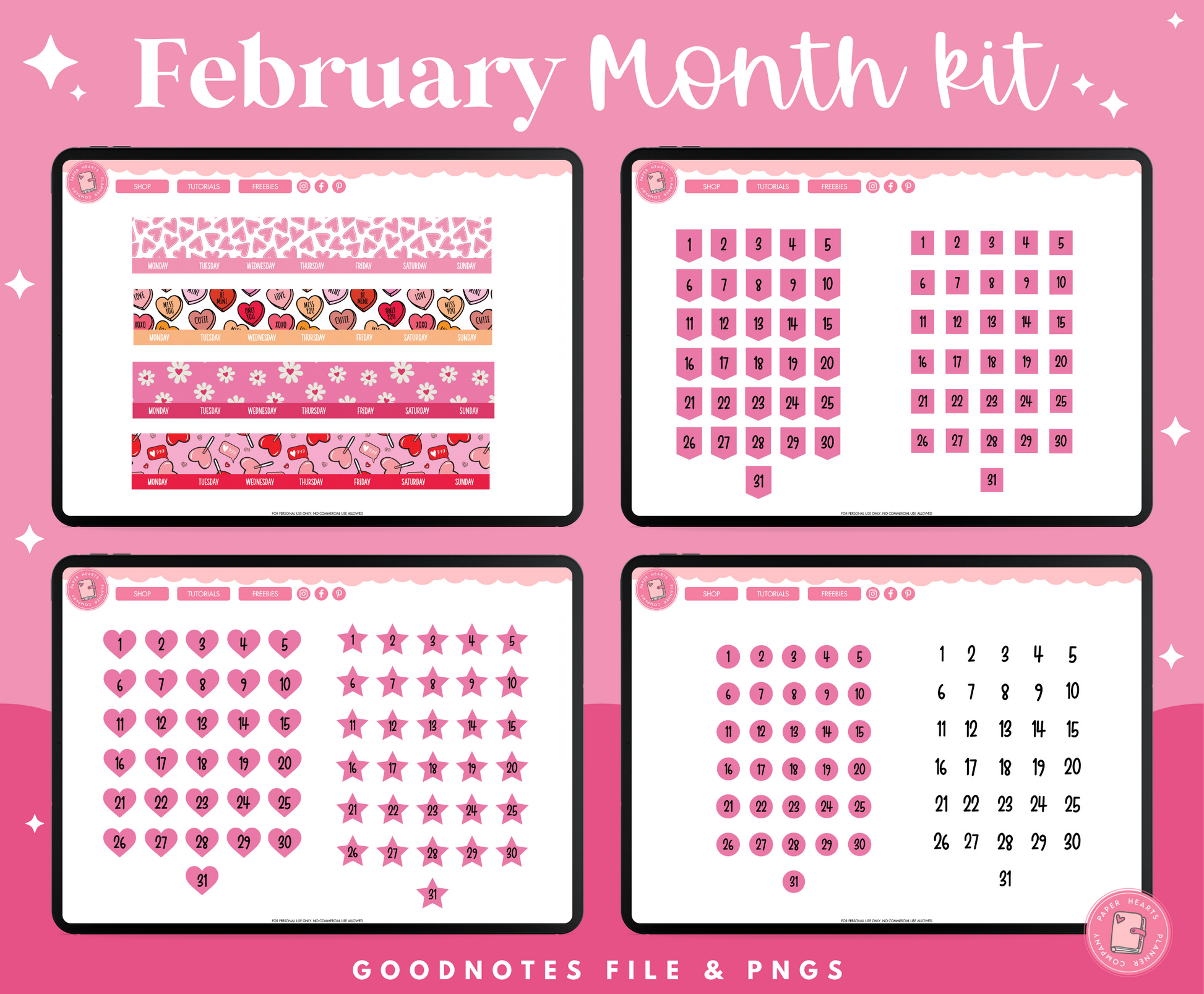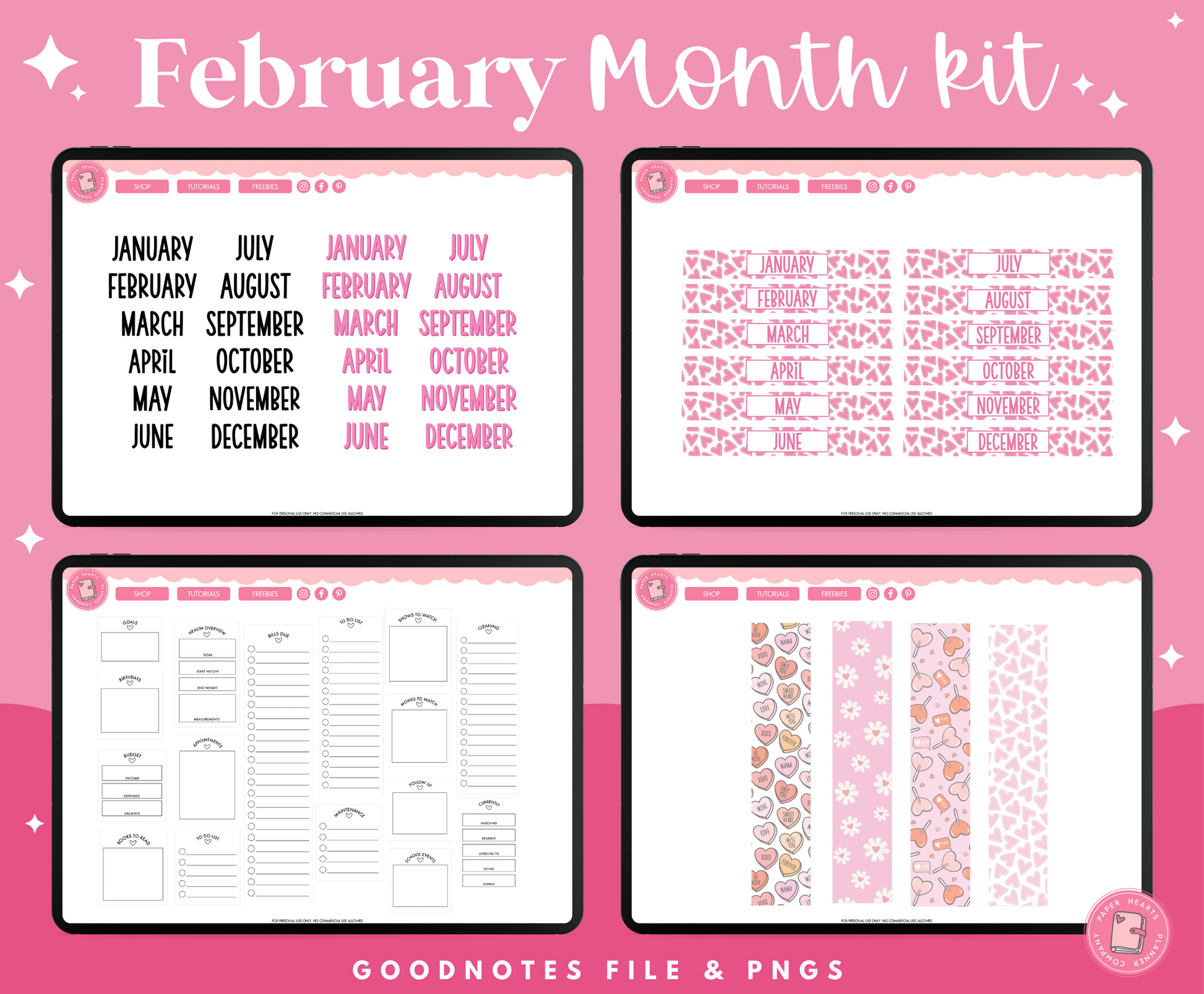 All of our products are for personal use only. None of our stickers, planners, or printables may be redistributed commercially. All rights remain with Lindsay Lawless, Paper Hearts Planner Co.