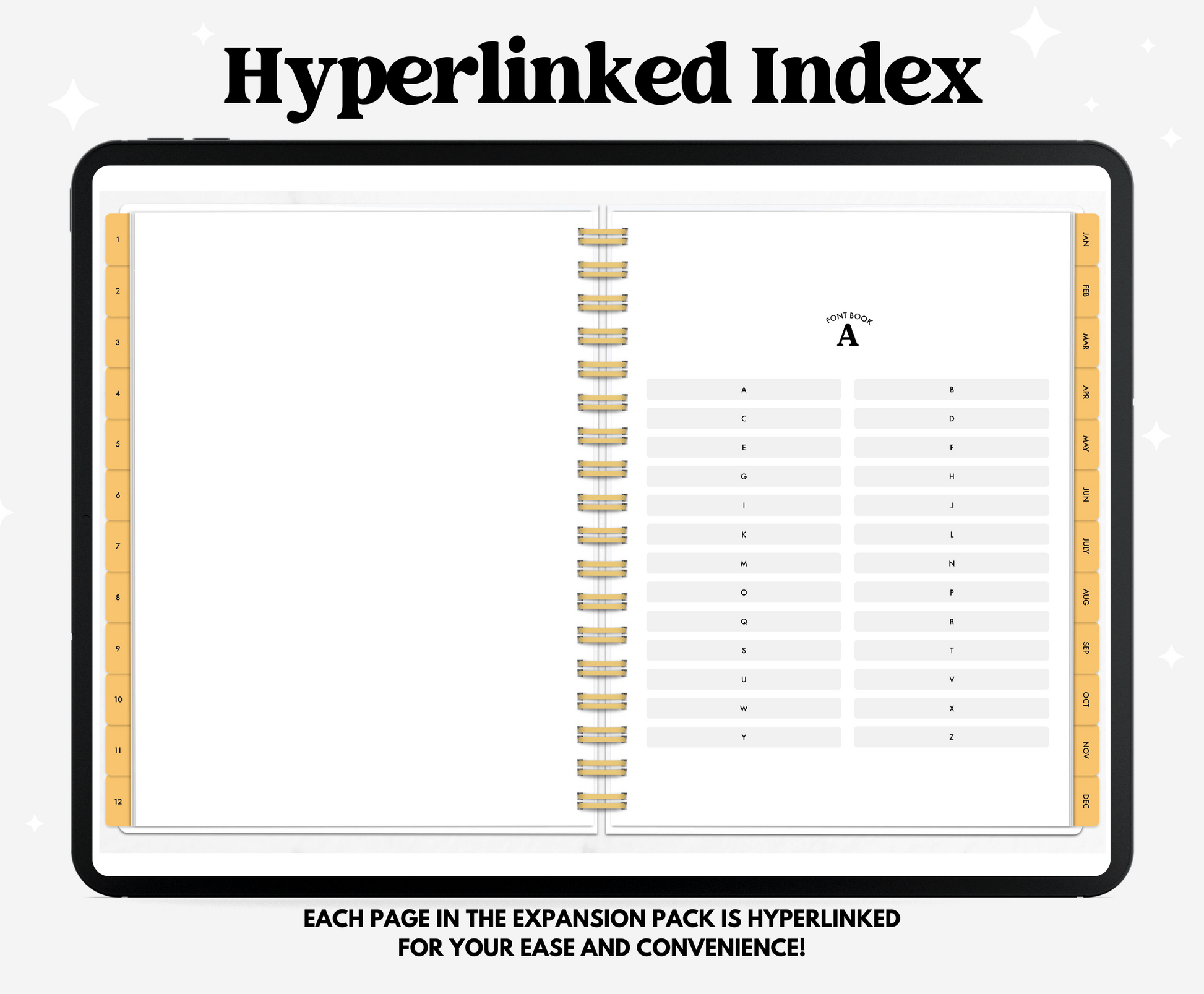 Keep track of your favorite fonts in your digital planner with the Font Book Expansion Pack.
