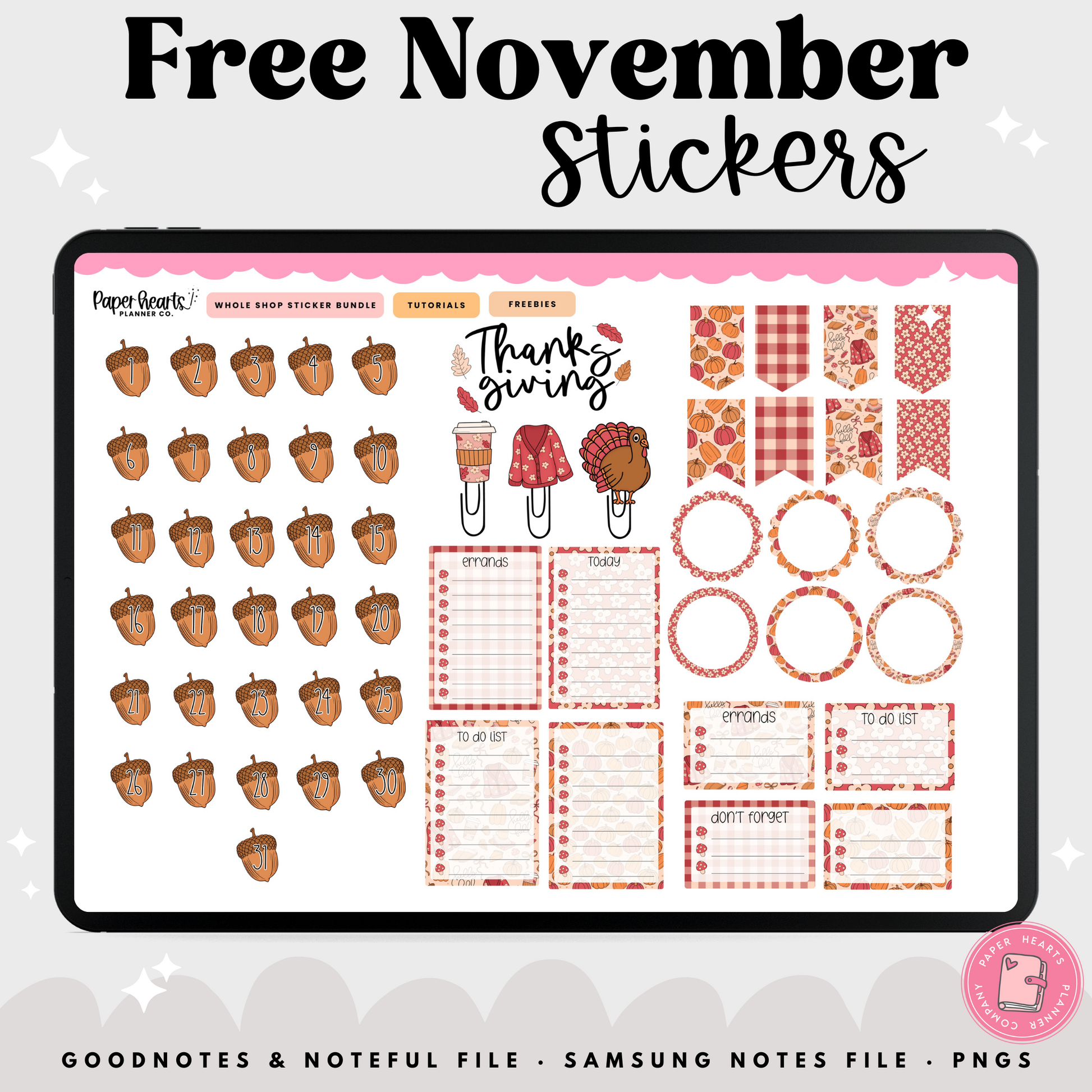 Decorate your digital planner for fall with these Free November Stickers! The Free November Sticker set is perfect to decorate your digital planner for Thanksgiving! Grab these fall Planner Stickers now!