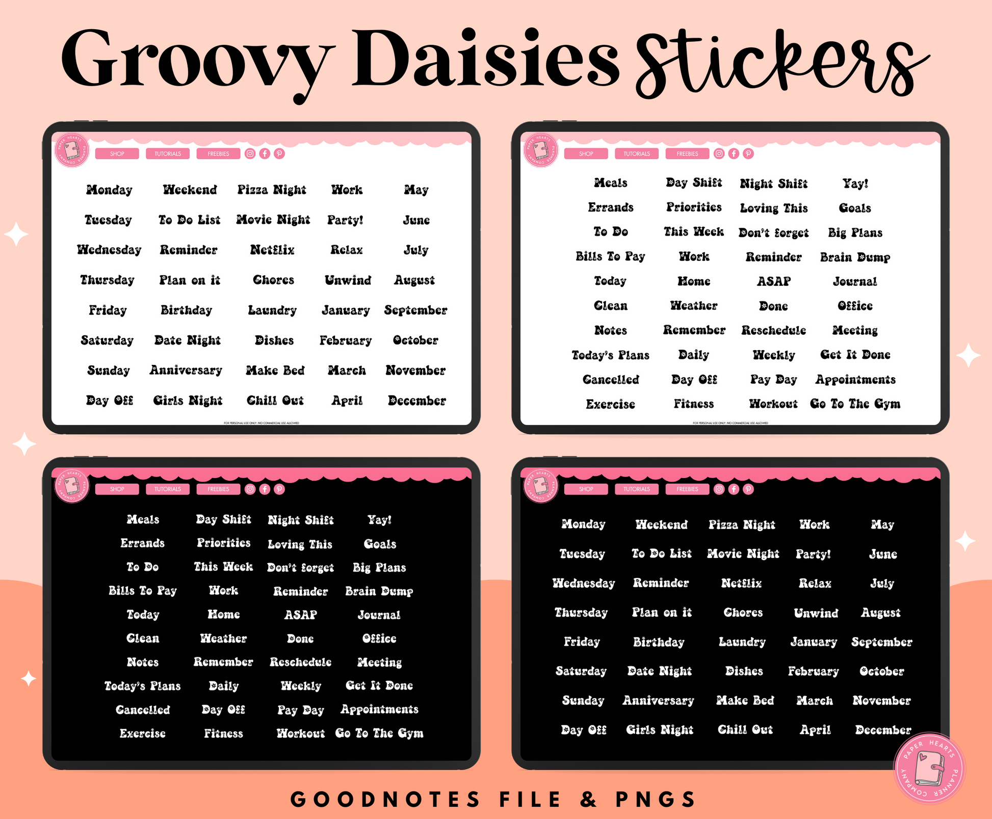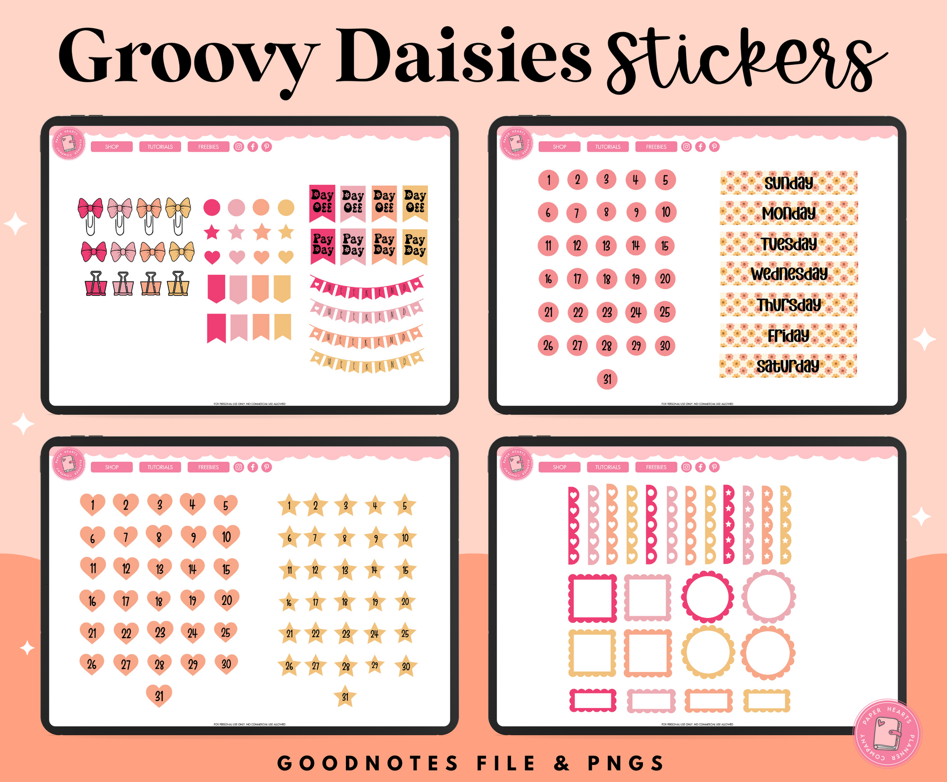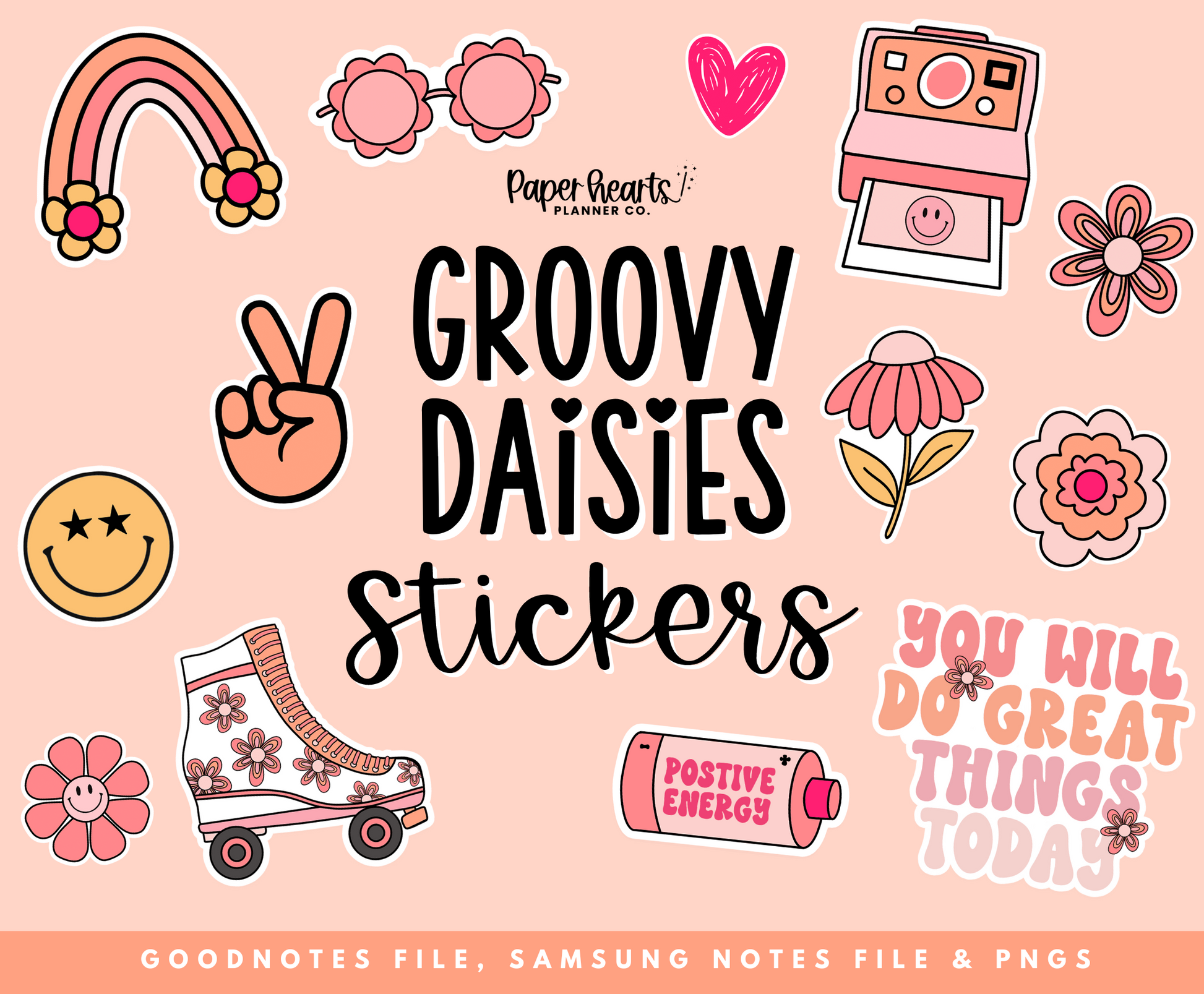 Add a little retro to your planner with these Groovy Daisies Stickers! These retro digital stickers are perfect to decorate any time of the year in your digital planner!