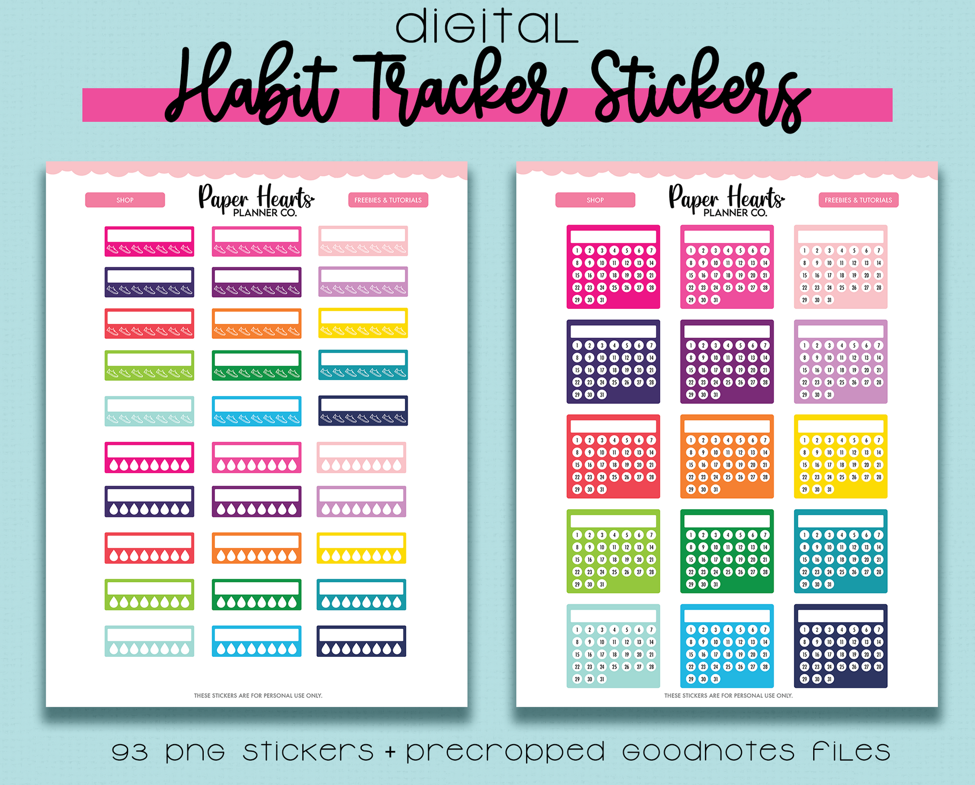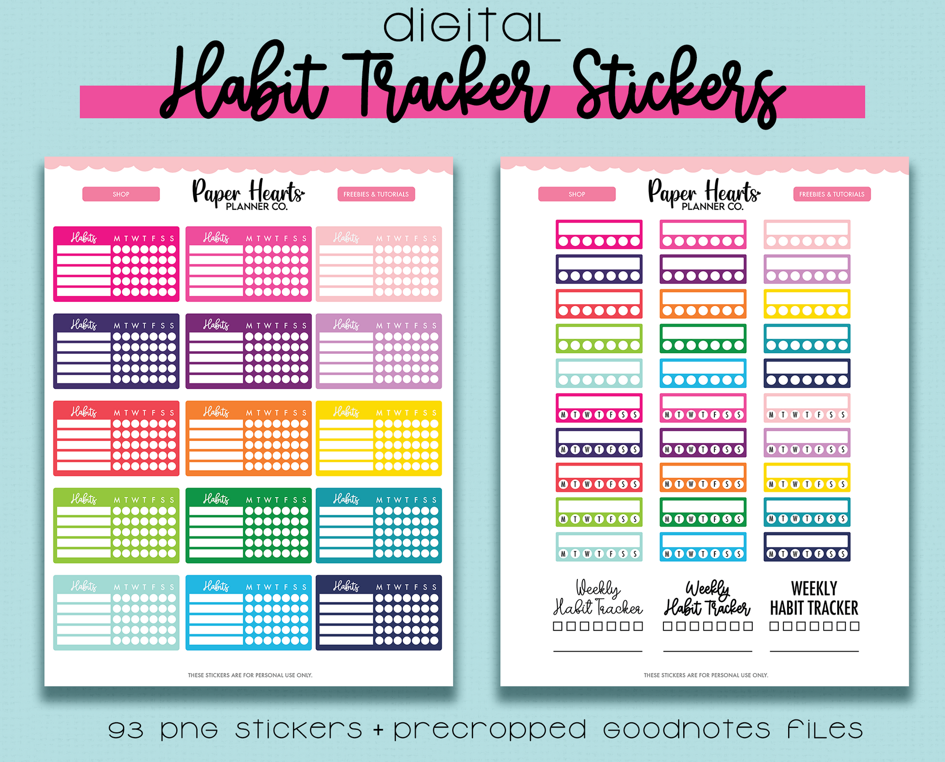This Habit Tracker digital sticker set includes: