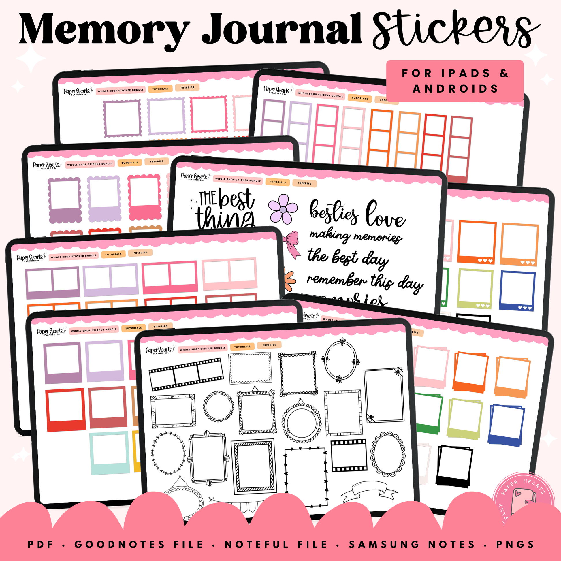 Bring your memories to life in this Digital Memory Journal. Don't let your pictures fade away in your camera roll. Instead, create a digital scrapbook with the Memory Journal and Stickers!
