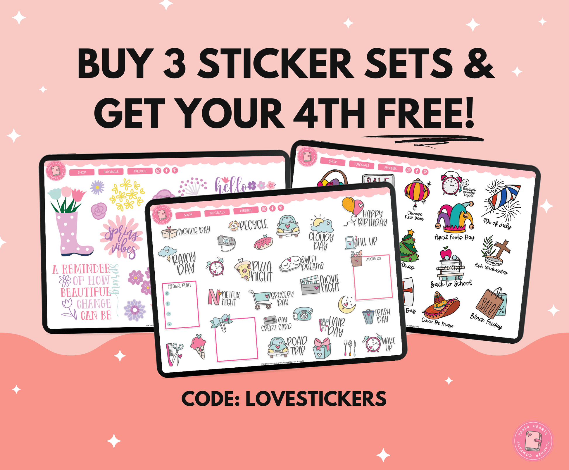 All of our products are for personal use only. None of our stickers, planners, or printables may be redistributed commercially. All rights remain with Lindsay Lawless, Paper Hearts Planner Co.