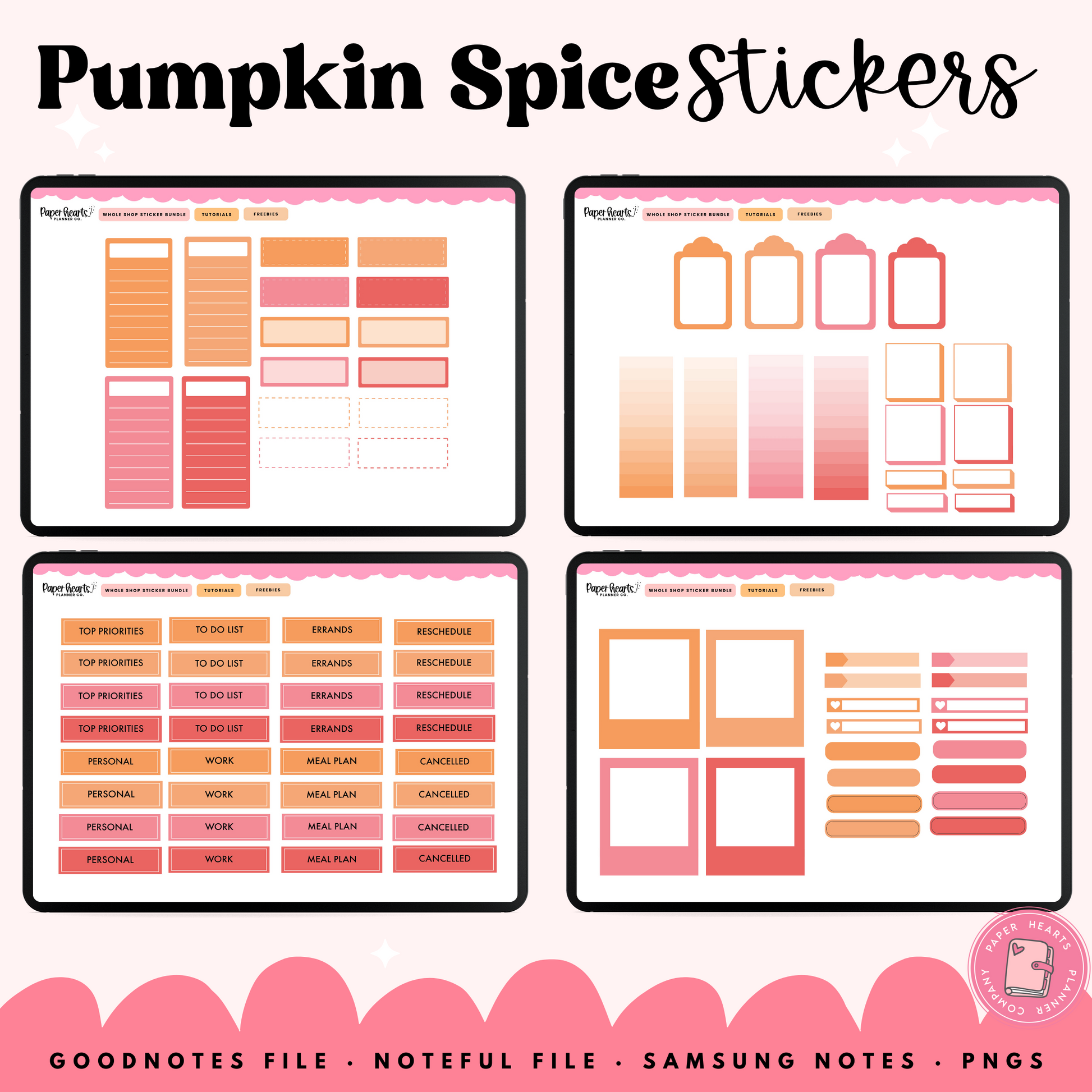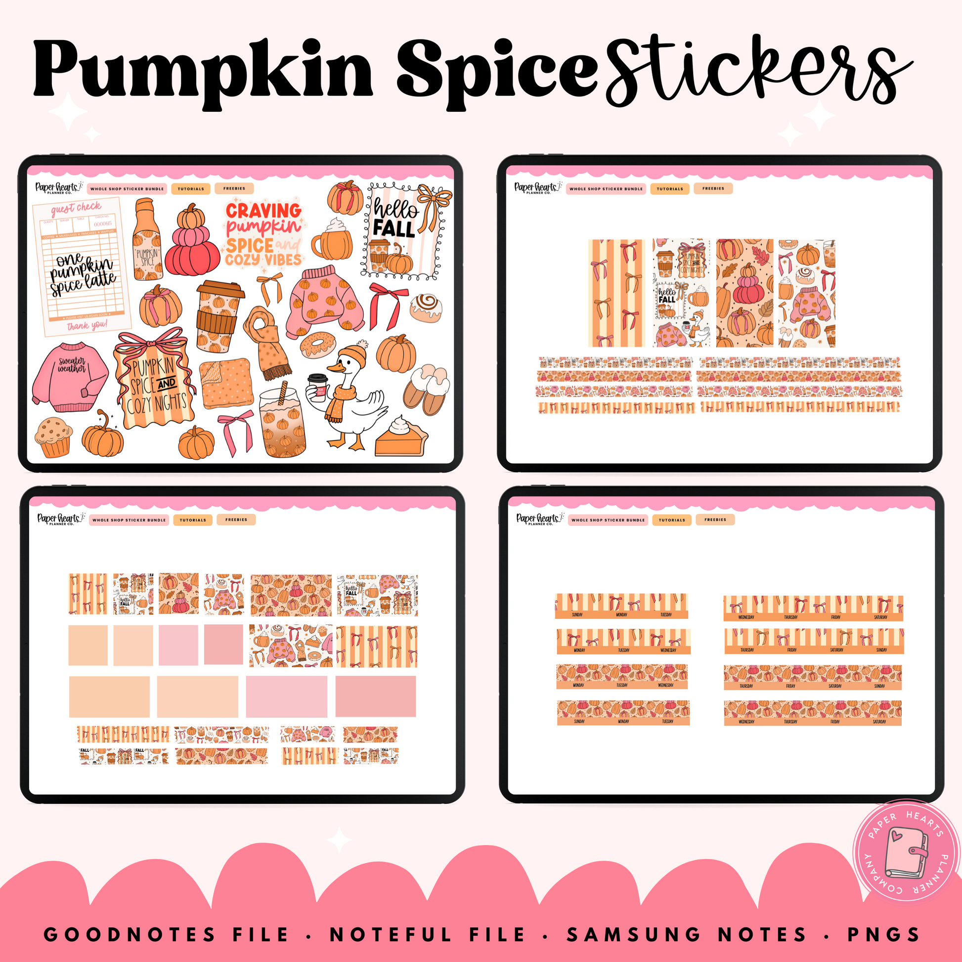 Decorate your digital planner for fall with these Pumpkin Spice Stickers! These fall Digital Stickers include pumpkin spice stickers, pumpkins stickers, fall stickers and more!