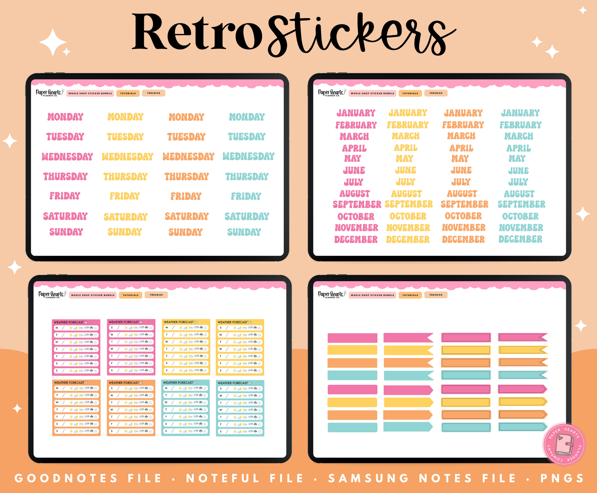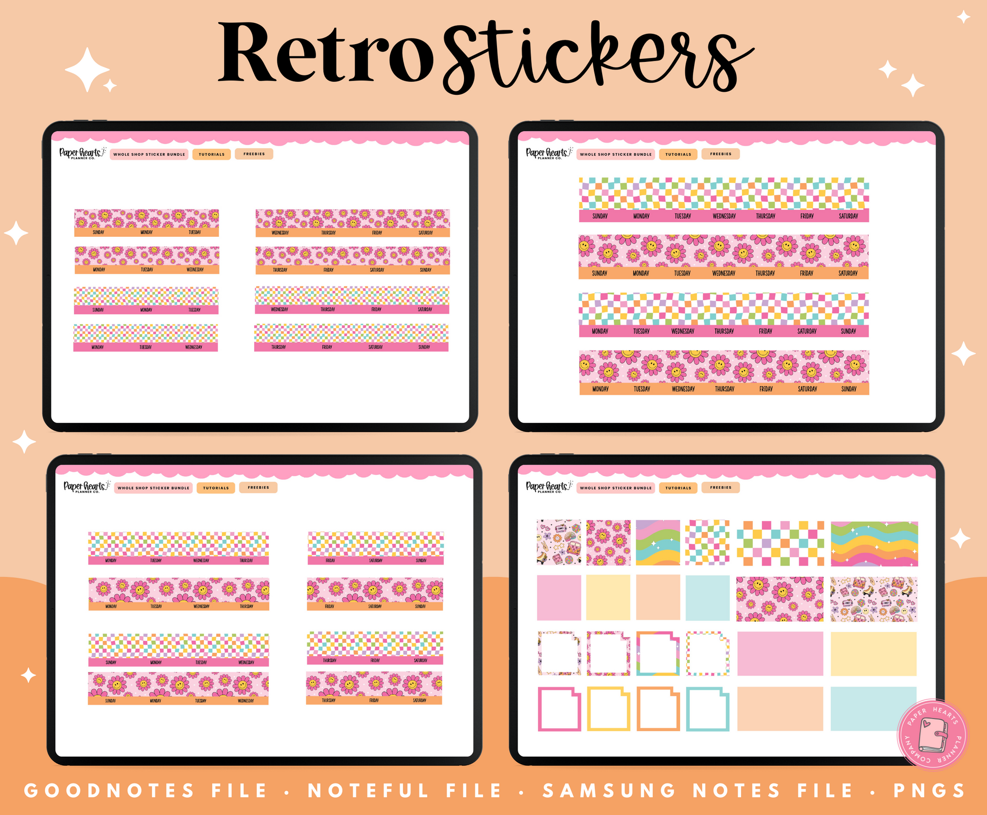 Decorate your digital planner any day of the week with these Retro Digital Planner Stickers! These Groovy Stickers are perfect to give your planner a pop of color!