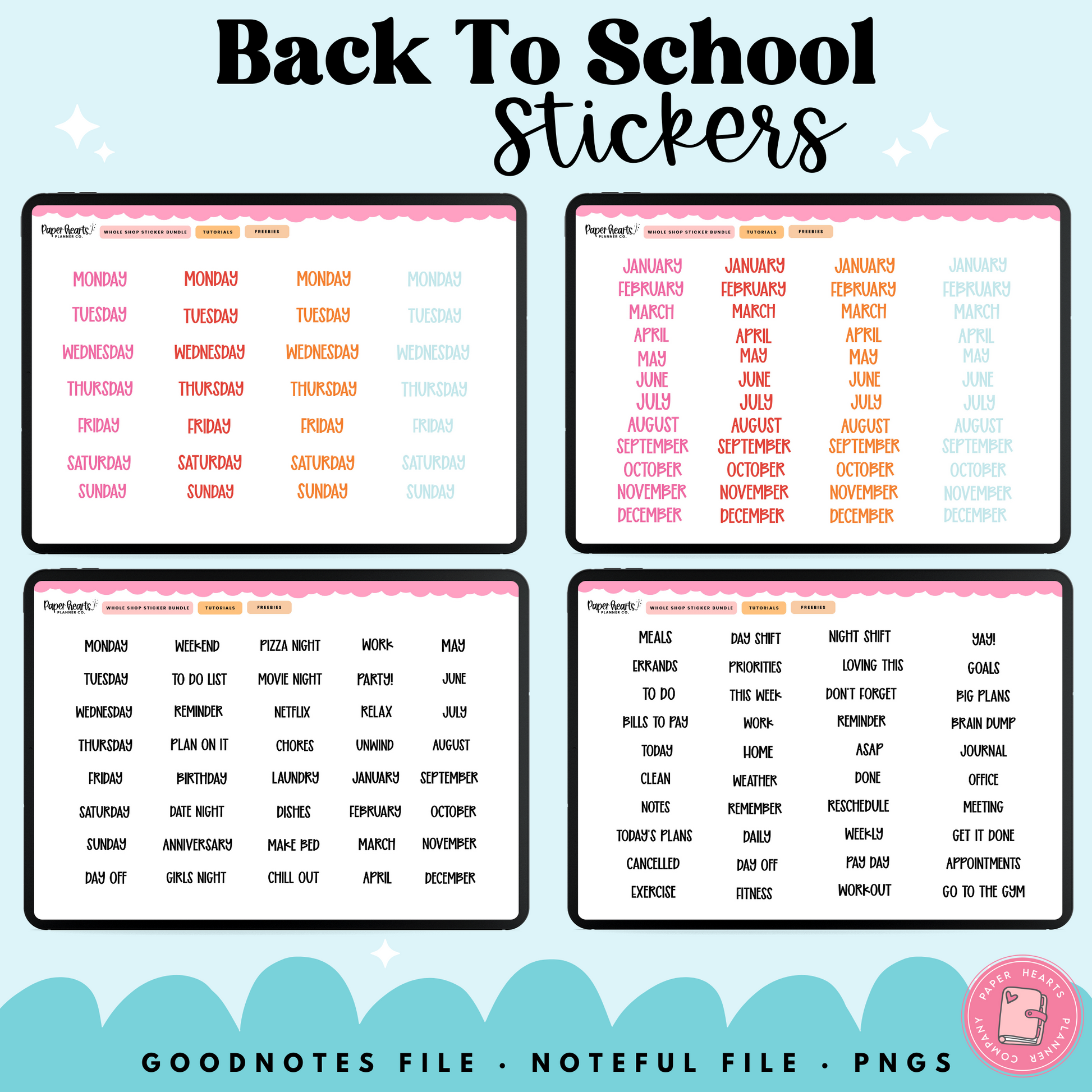 Decorate your digital planner all school year with these School Days Stickers! Plan Back To School plus keep track of school events all year long with these School Stickers!