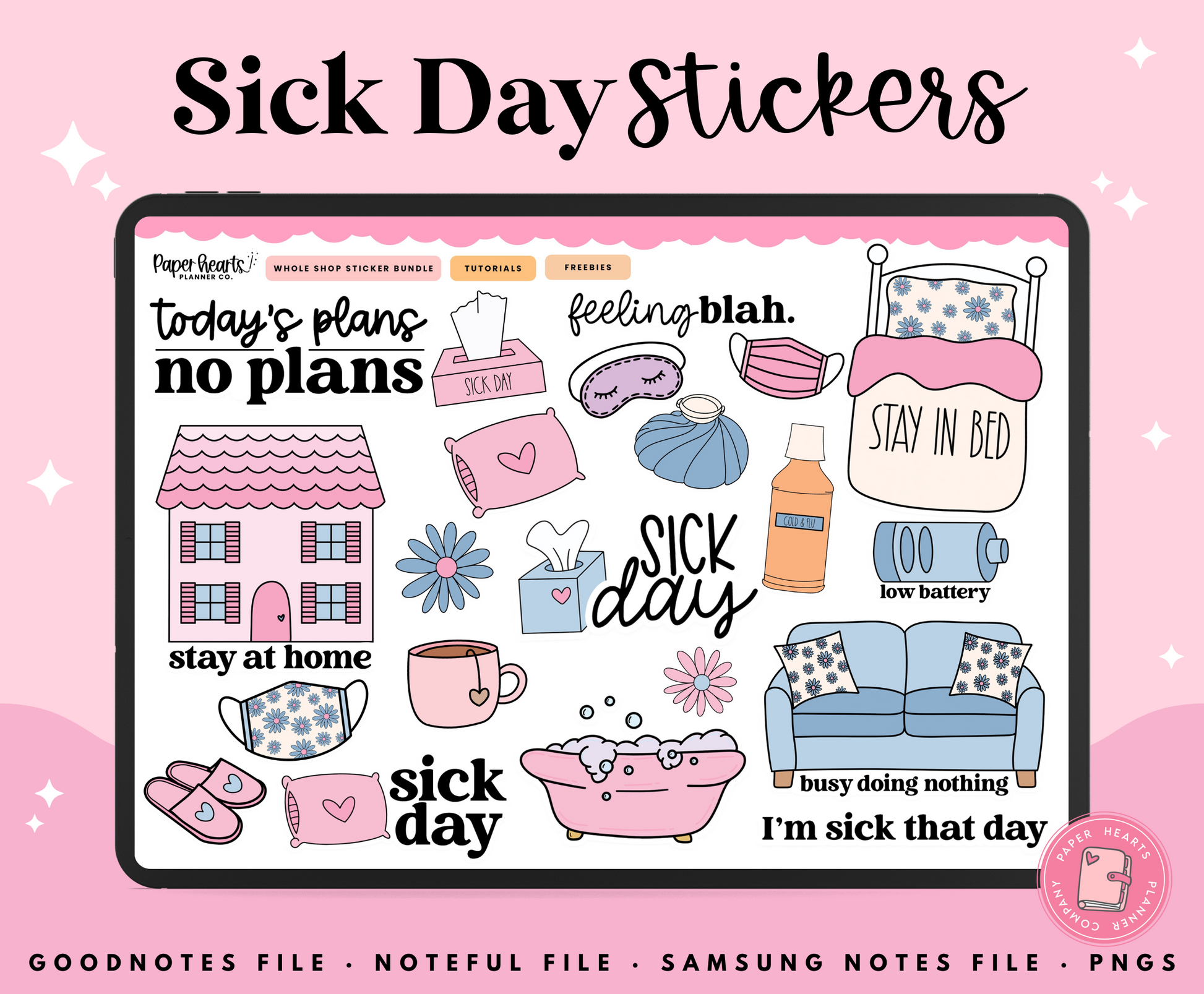 Decorate your digital planner even when you feel like doing nothing with these Sick Day Digital Stickers!